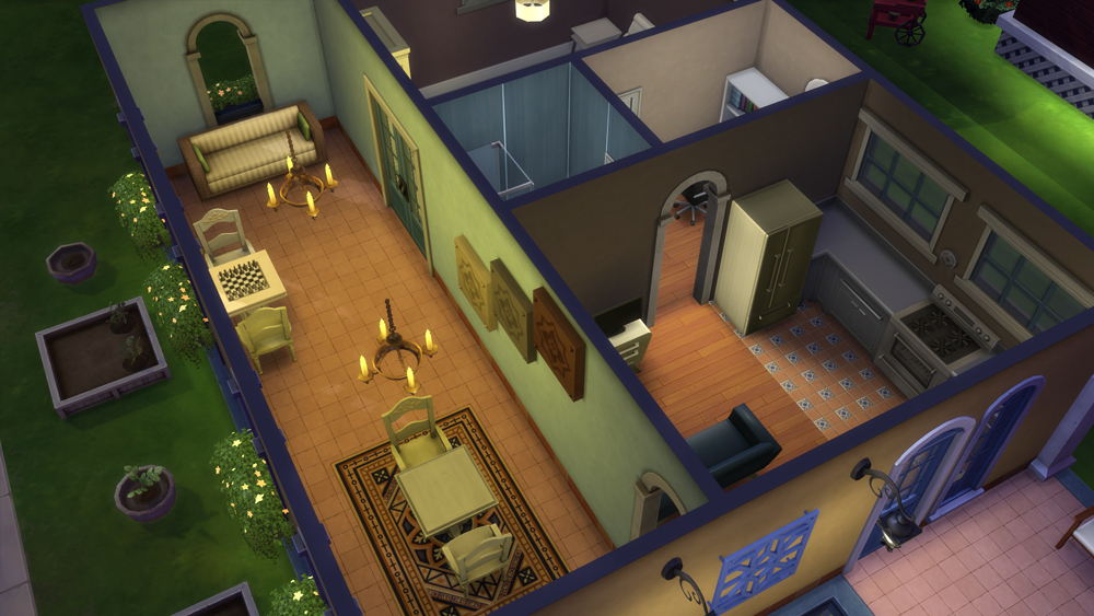 I found something like this next one on a tiny house website. I loved the bit of Spanish flair it had so I went for it. I miss all the options I had on Sims 3 for customizing EVERY. THING., but I'm fairly happy with how it came out.